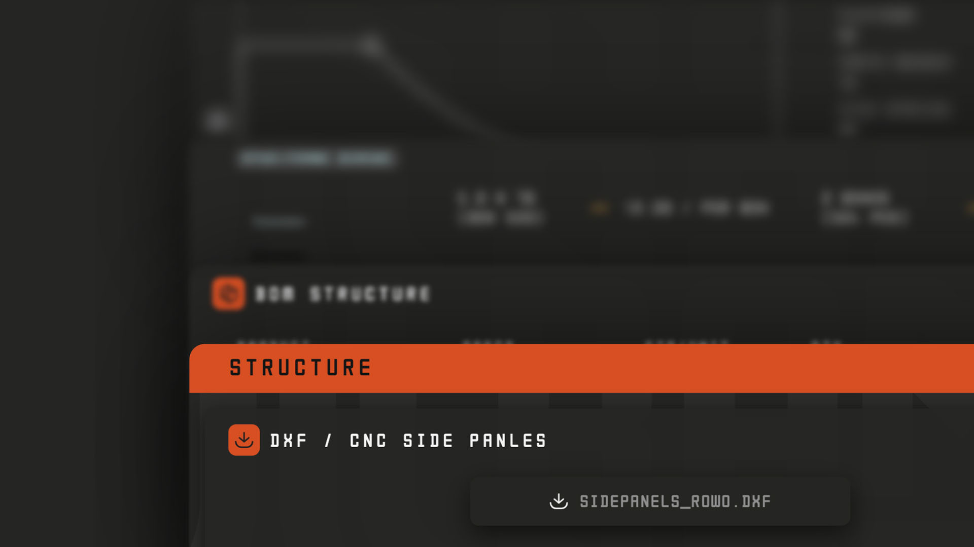 Instant DXF. Side panels are CNC-ready without technical know-how. Includes accurate cut lists for studs, coping, and sheet nesting.