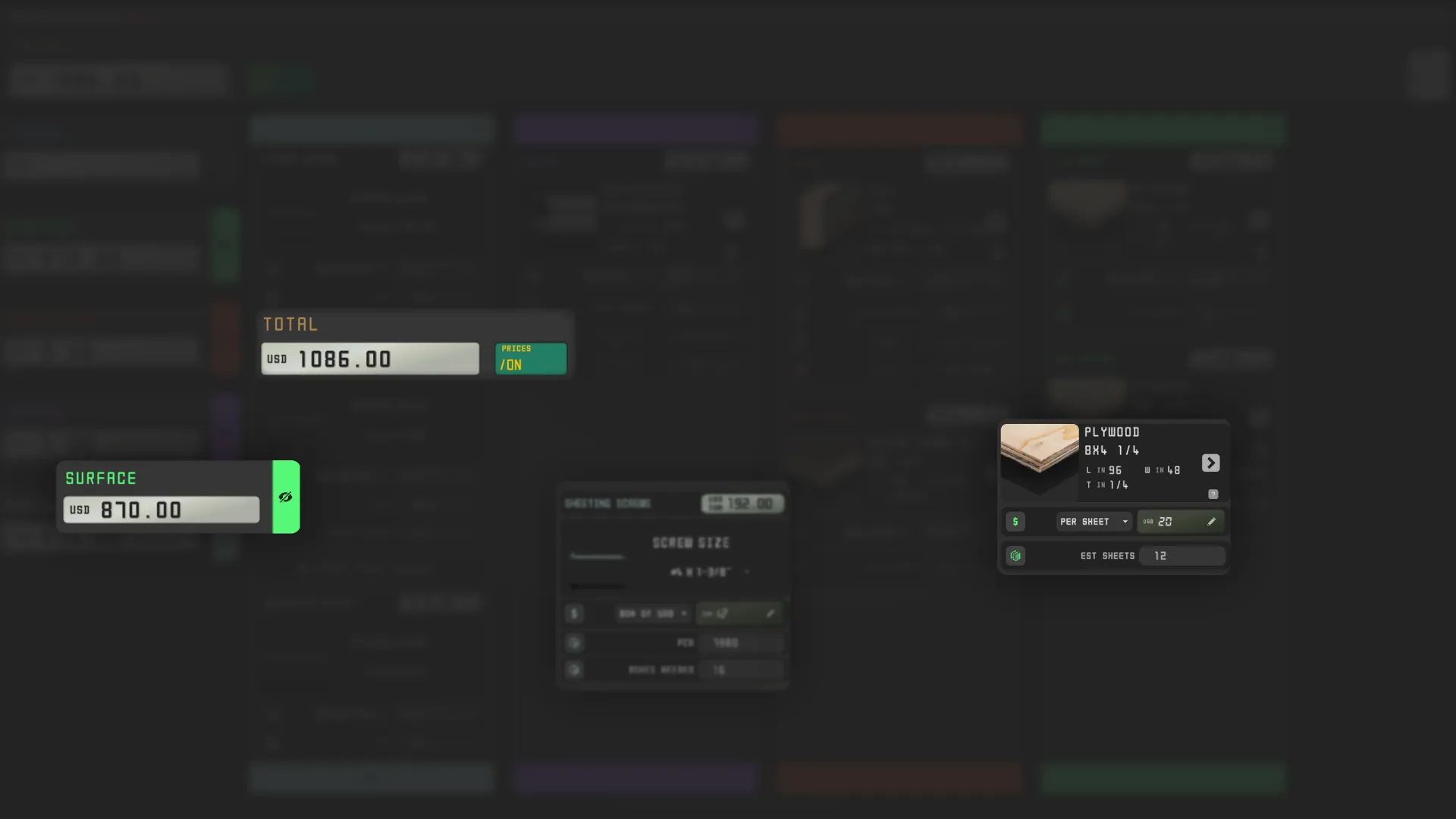 Enter local prices once. Your project’s totals and budget update live while you design, with an exportable bill of materials.